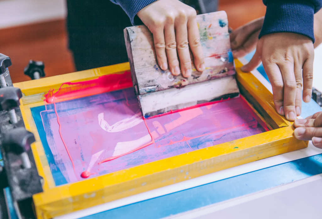 - Шелкография – позволяет получить яркие и насыщенные цвета. Она идеальна для печати на текстиле, стекле, пластике и других материалах. Изделия обладают высокой устойчивостью к истиранию.