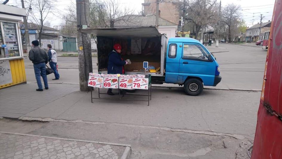 Проигнорировали карантин и продавцы сомнительной колбасы по 49 грн кг. Фургончики с мясными изделиями и сыром продолжают выезжать на привычные для покупателей места и реализовывать свою продукцию. Горожане сообщают, что без холодильников и несмотря на карантин, торговля продолжается и на улице Строителей возле рынка «Колос», а также на трамвайной остановке на улице Декабристов. Единственным плюсом является то, что продавец в защитной маске и перчатках. Некоторые покупатели также одевают перчатки, перед тем, как подойти к прилавку.