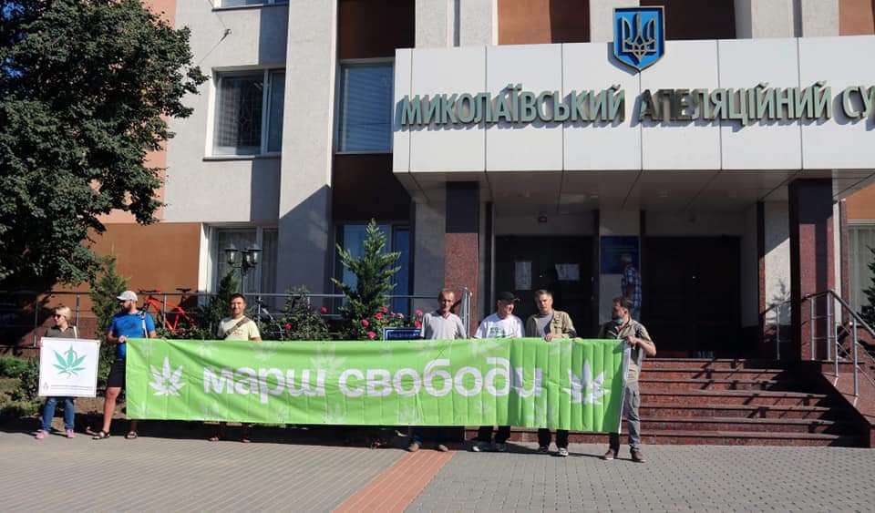 На днях в Николаеве возле Апелляционного суда области активисты «Демократичної сокири» устроили необычную акцию за легализацию медицинского каннабиса. Под стены учреждения пришло около десятка человек, которые таким образом хотели поддержать жителя Еланецкого района Виталия Румянцева. Подсудимый — онкобольной и является инвалидом первой группы. В 2018 году его обвинили в незаконном выращивании и употреблении конопли. Таким образом он оказался на скамье подсудимых, пишет imykolayivchanyn.com.