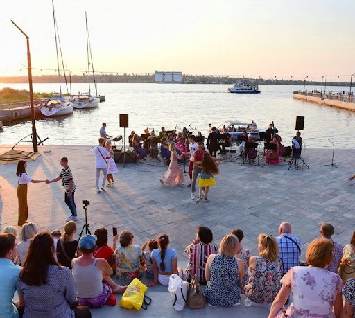 Атмосфера, созданная благодаря симфонической музыке на закате у реки, не оставила николаевцев равнодушной: собравшиеся гости с радостью станцевали вальс.