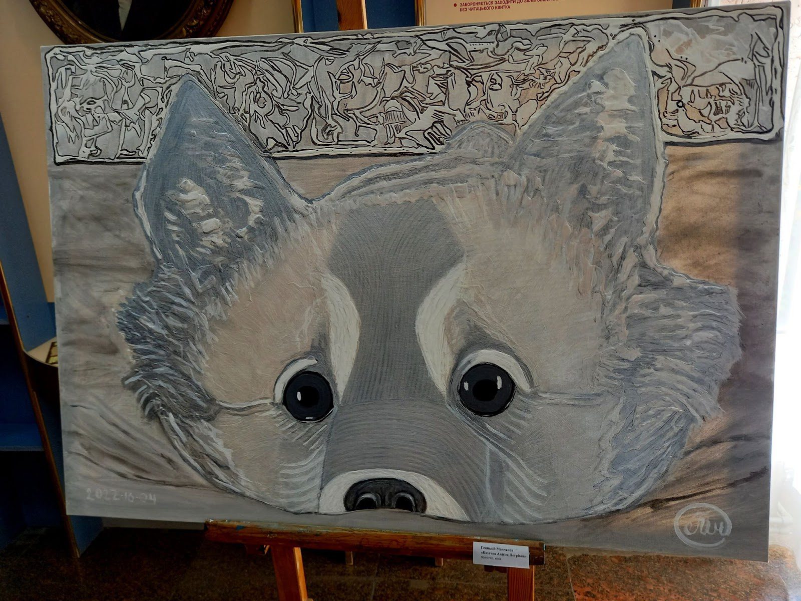 “Там было представлено больше работ. Но сегодня выставки проводим здесь в холле. У нас сейчас все здесь происходит. Поэтому все картины с подъездной выставки мы показать не смогли. Они еще очень большие. Они почти 2 по формату. И они яркие. Поэтому мы остановим свой выбор вот на этих работах, которые и составили экспозицию под названием «Побратимы», — рассказала Инга Хоржевская.