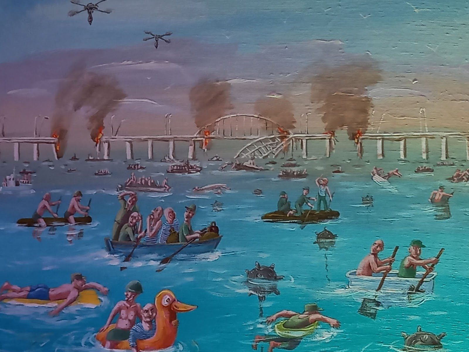 “Ця виставка знакова, тому що тут представлена картина, написана напередодні відомих подій (вибух Кримського мосту) Це сатиричний, гумористичний дух наших українців.