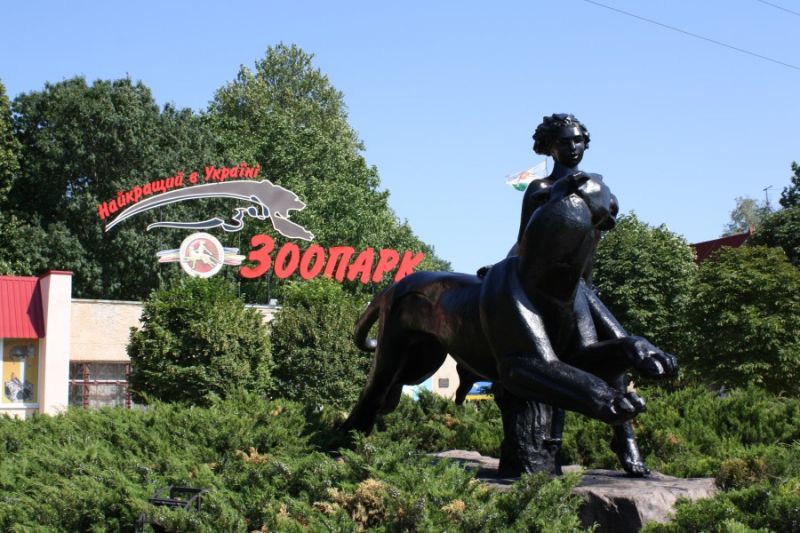 На площі перед зоопарком розташувалася скульптура, що зображує Мауглі, що біжать, і багіру, героїв дитячої казки Р.Кіплінга “Мауглі”. Така концепція скульптури була обрана, виходячи з різноманітності колекції зоопарку.