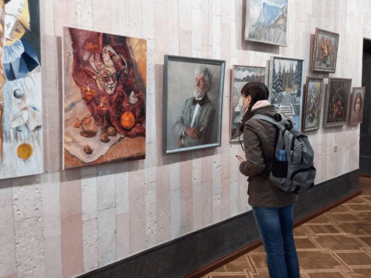 “Є нові роботи. Є роботи, які вже експонувалися, просто вони по темі. У нас в тому залі експонується робота Костянтина Головіна “Святий Миколай”. Художника вже немає, але все одно він член спілки, він художник. Не тільки його, а й багато інших художників”, – розповів Дмитро Артим.